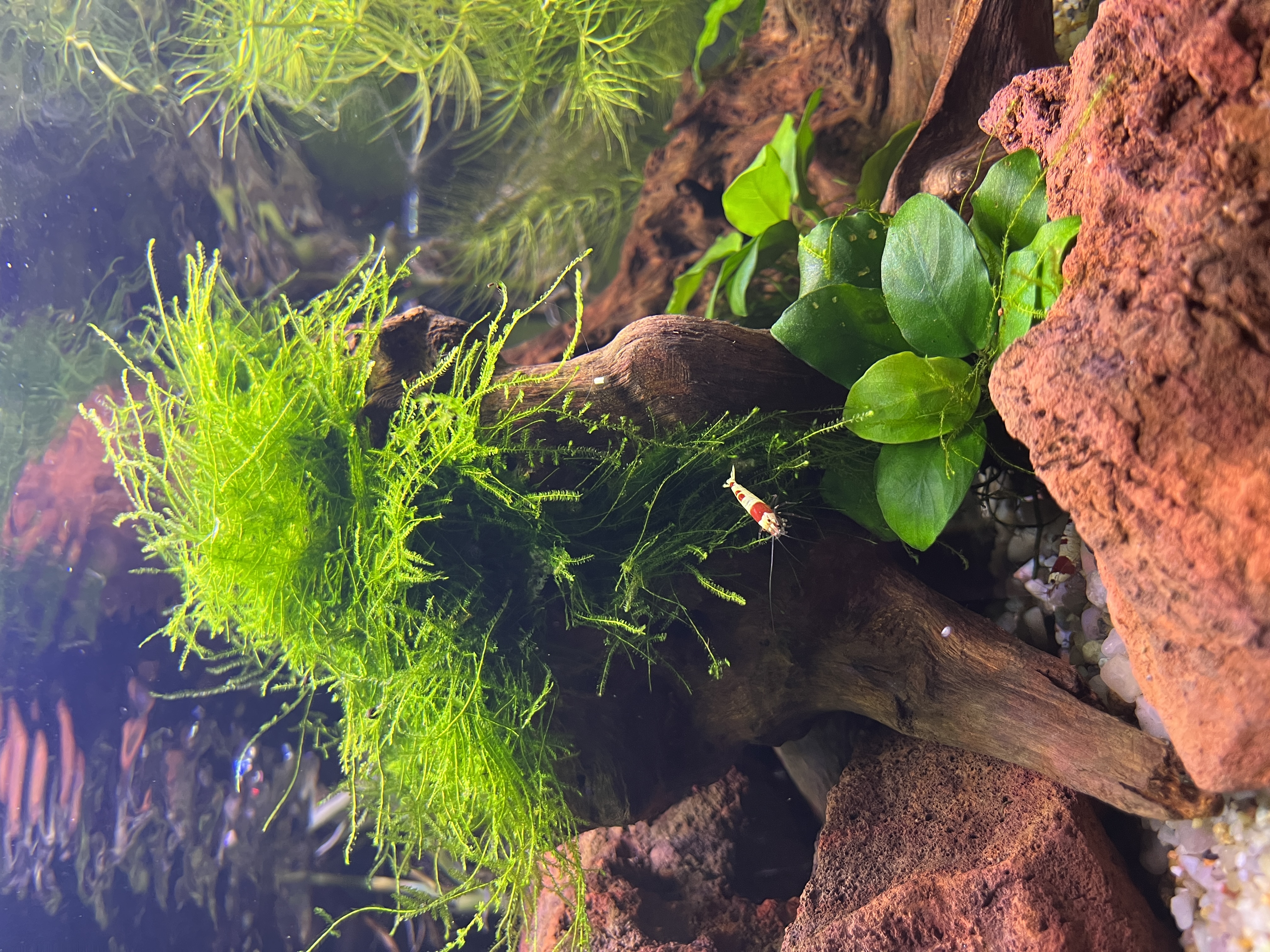 - Korzenie redmoor (małe) a na nich anubiasy i mech, korzeń z microsorium + pływające limnobium ( to jest chwast